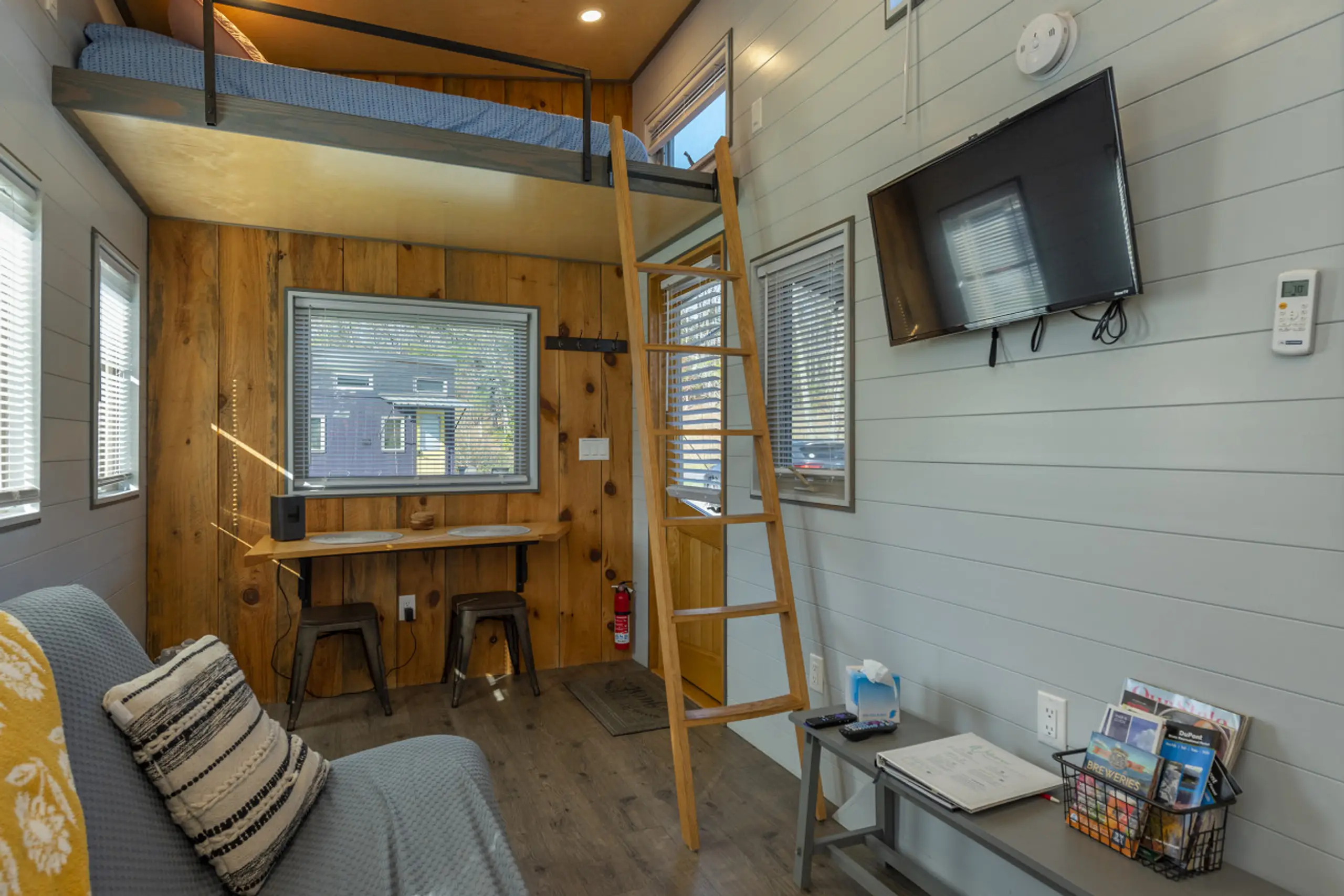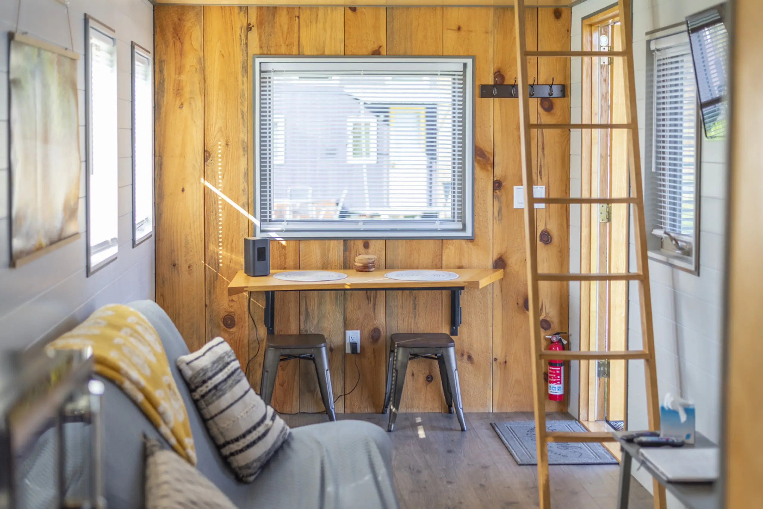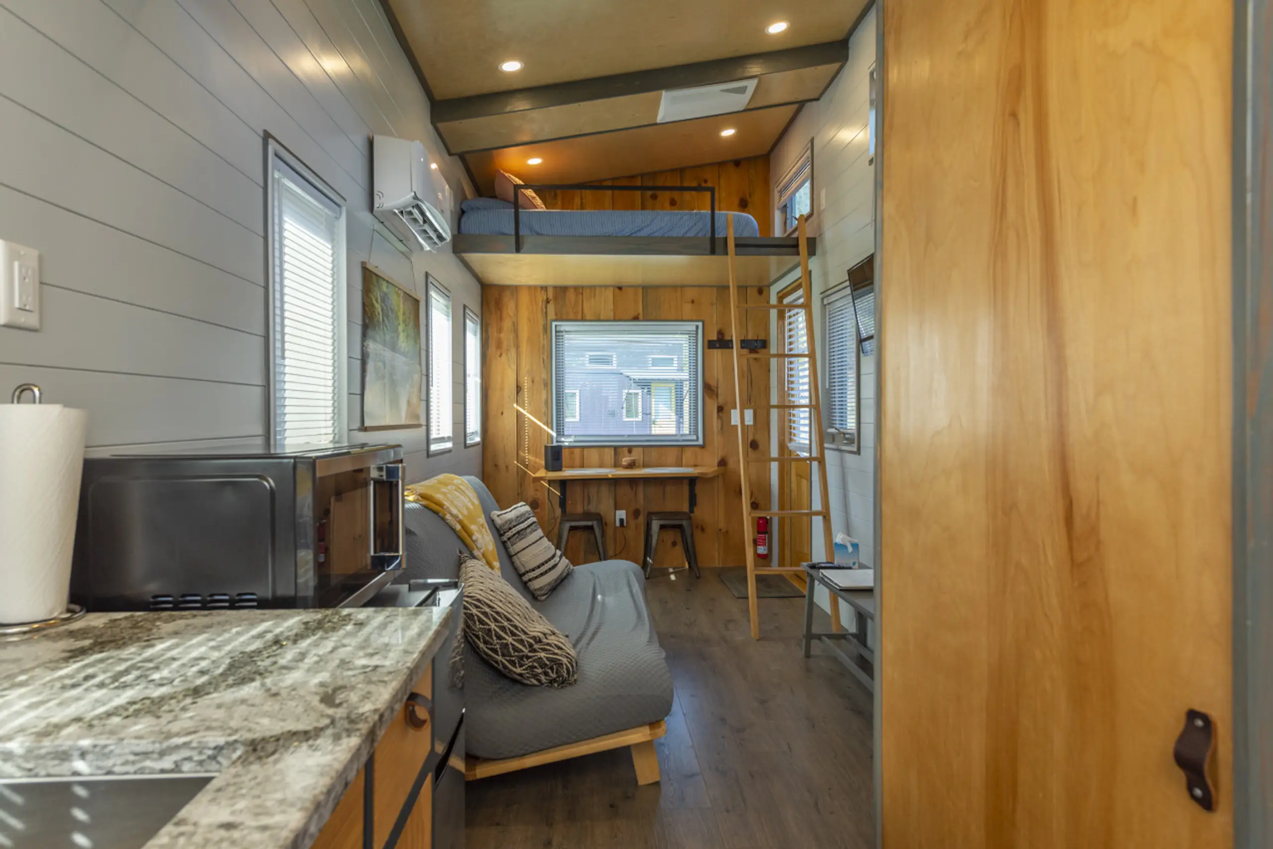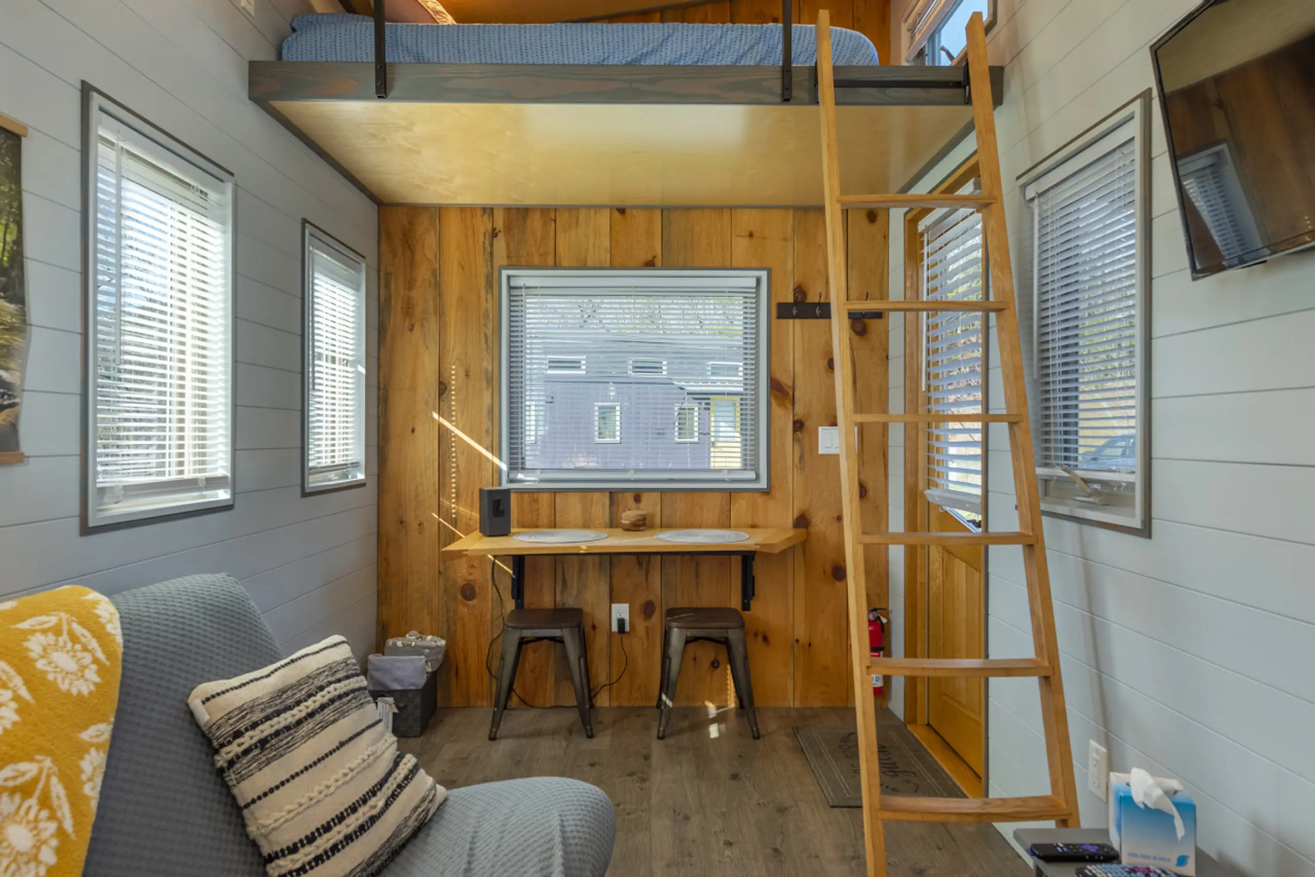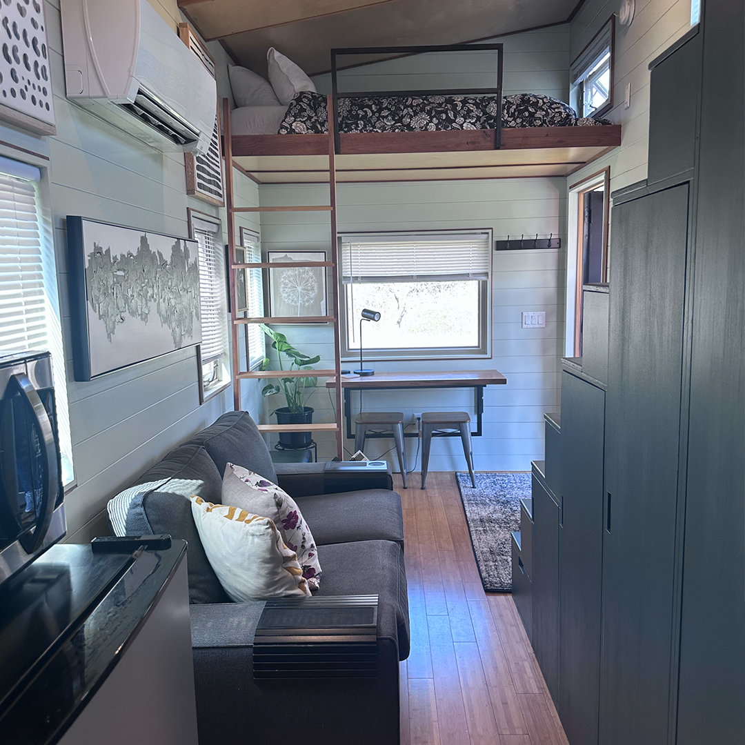 These homes are already parked in our desirable tiny house haven, meaning you don’t have to handle any of the setup—they’re move-in ready! If the home is listed as a vacation rental, you may choose to keep it as a short-term rental or you can use it as your full-time residence. Please note you must be approved by our management team beforehand.