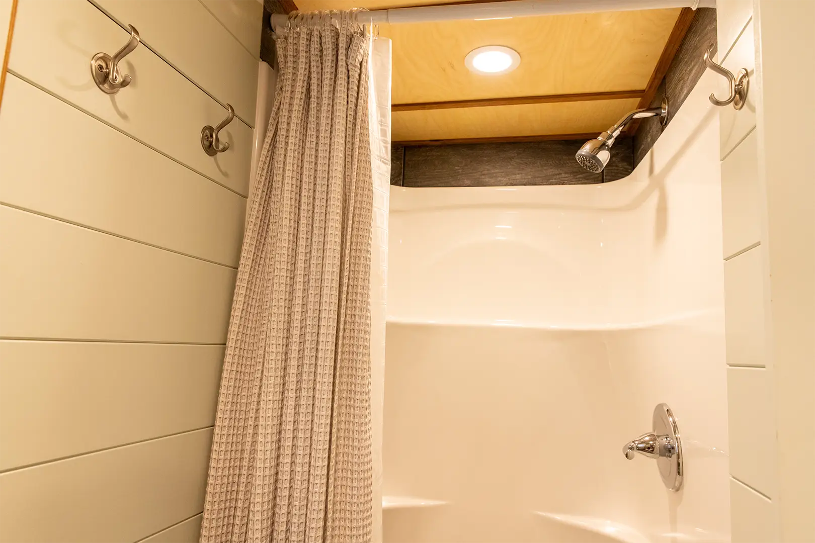 - Full bathroom with shower and flushing toilet