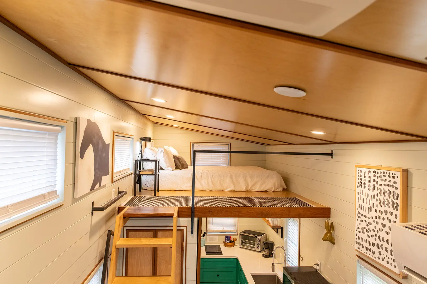 - Two loft bedrooms (queen and twin)